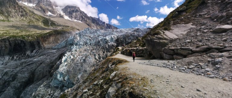 Alpine majesty unfolds: Admire the sprawling glacier, a breathtaking scene of nature’s grandeur and icy wonder.