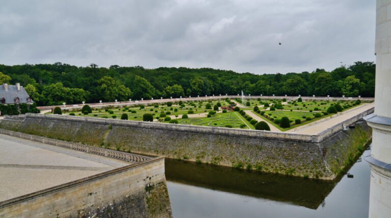 Regal haven: Explore lush greenery, artistic sculptures, and historical charm in this French garden retreat.